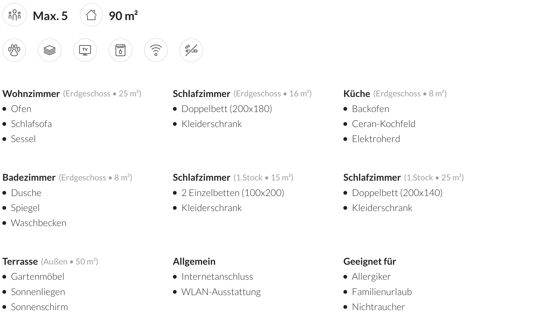Die Vogesenhütte ist sehr komfortabel ausgestattet und es sollte Ihnen während Ihres Aufenthalts eigentlich an nichts fehlen. Hier noch einmal die wichtigsten Eckdaten: